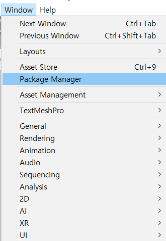 1. 유니티에서 Package Manager에 들어간다.