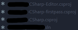 3. 유니티를 종료하고, 해당 프로젝트에서 .csproj 파일과 .sln 파일을 모두 삭제한다.