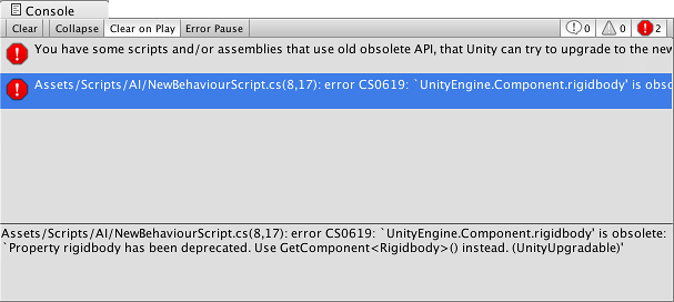 유니티 에디터에서는 컴파일 오류, 런타임 오류 등 다양한 문제가 발생하면 편리하게 로그를 띄워줍니다.