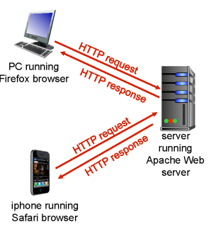 위 사진에서 아파치 웹 서버(Apache Web server)에 PC와 아이폰이 연결되어 있다.