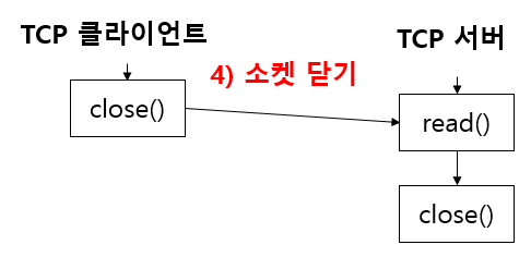 그림처럼 클라이언트가 close()를 호출하게 되면 서버가 read()를 통해 해당 메시지를 읽게 되고, 서버 측도 close()로 닫으면 통신이 종료된다.