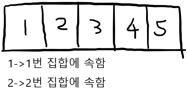 위의 칸들이 첫 번째 행이라고 하면 각각 1번 집합, 2번 집합, 3번 집합, 4번 집합, 5번 집합에 할당한다.