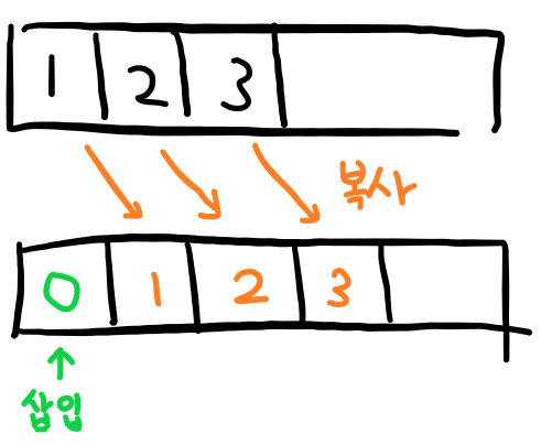 벡터는 배열 기반의 자료구조이므로, 중간에 원소를 삽입하면 그 뒷부분을 모두 복사해야 한다.