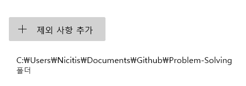 아래에 제외 대상으로 폴더가 추가되었다면 끝입니다.