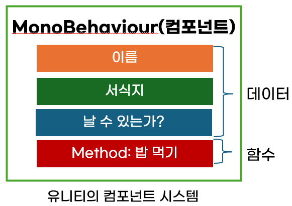 MonoBehaviour를 작성하면, 보통 데이터도 가지면서 이를 처리할 함수도 갖게 된다.