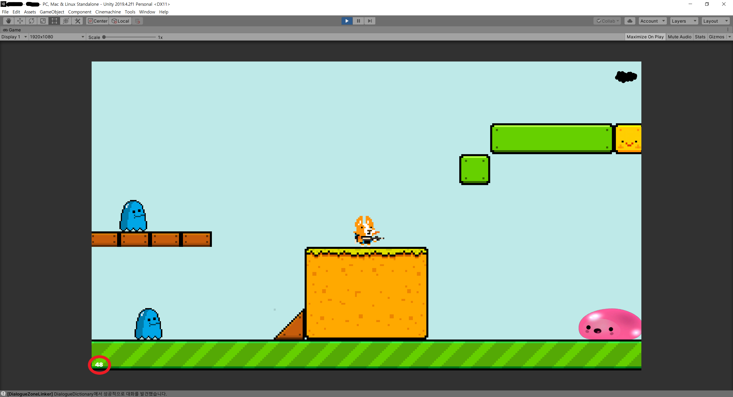 위의 사진을 잘 보면 2D 플랫포머 게임치고 48 fps라는 저조한 프레임이 나타나고 있다.