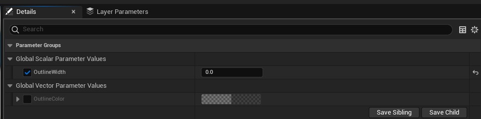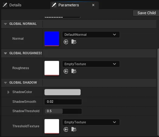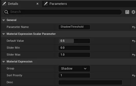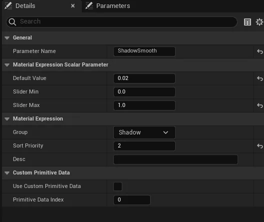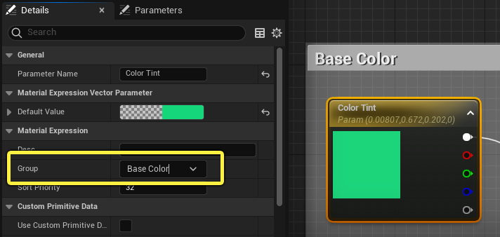 파라미터 그룹은 부모 머티리얼에서 설정할 수 있다. 머티리얼 에디터의 디테일 패널에서 그룹을 설정할 수 있다.