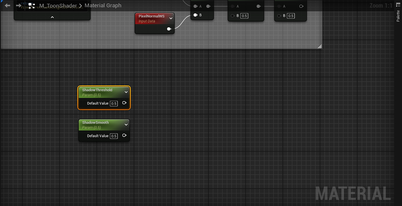 먼저 파라미터 그래프에서 머티리얼 파라미터 노드를 하나 선택한다.