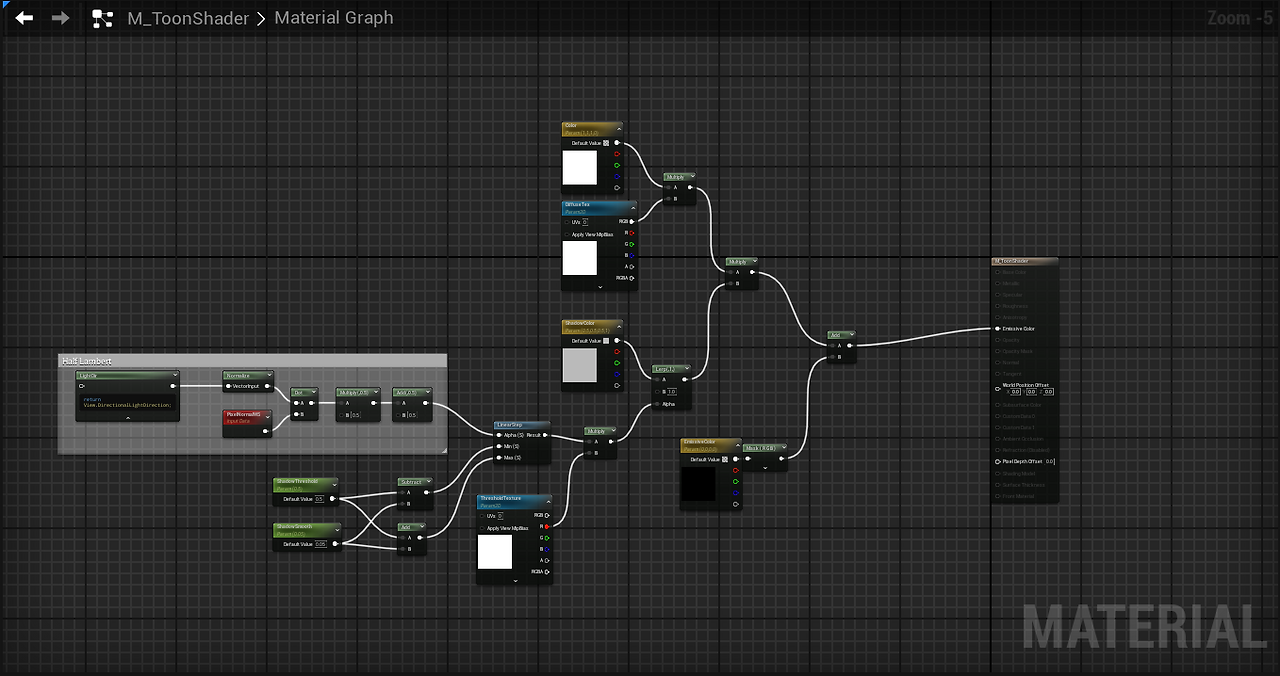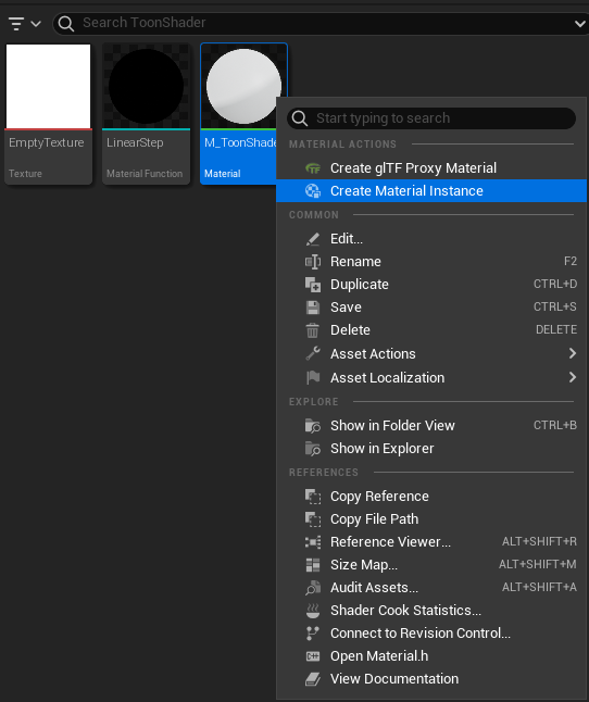 일단 중간 테스트를 위해 간단하게 툰쉐이더를 제작해 보았다. 이제 이를 통해 Material Instance를 만들어 보자.