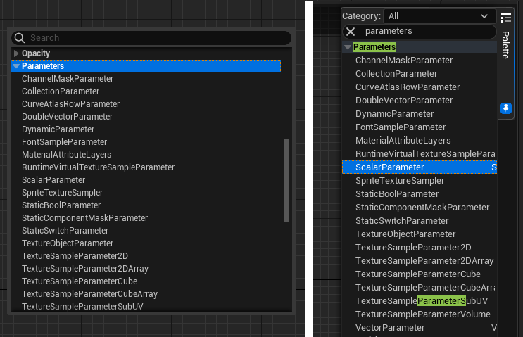 이외에 TextureSampleParameter2D 등은 단축키로 안 되니 검색해서 생성하자.