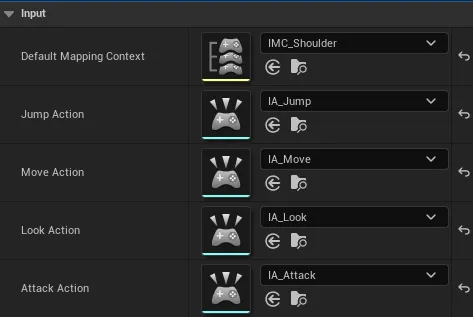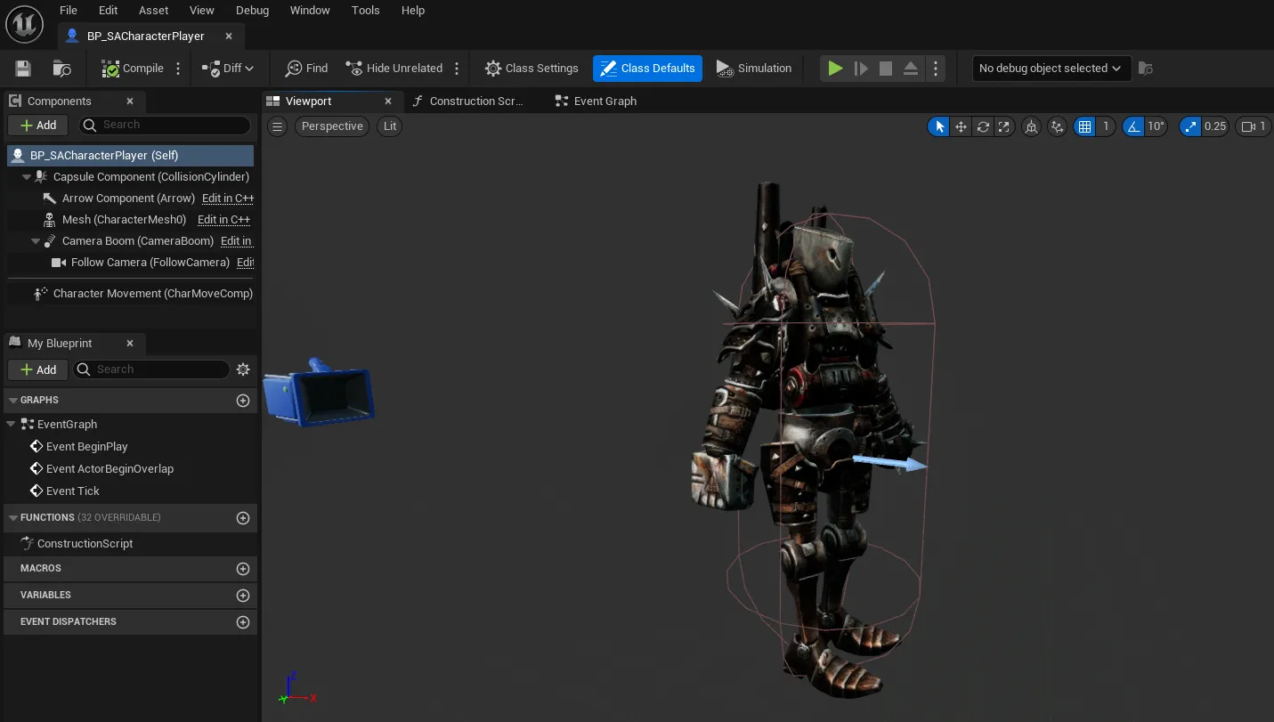 대부분의 설정은 프로젝트 생성 시 제공되는 기본 액터 AStylizedActionGameCharacter의 설정을 그대로 사용하였다.