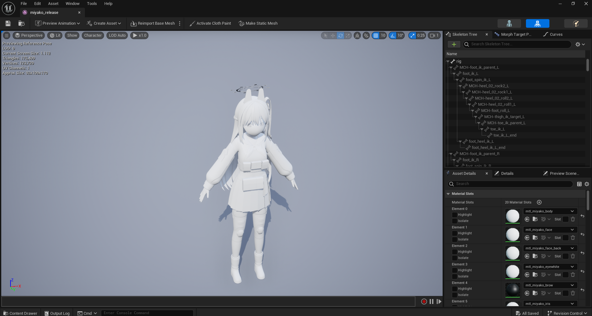 모델에서 확인해야 하는 점은 두 가지 정도가 있었는데, (1) 모델이 잘 움직일 수 있게 관절이 심어져 있는지와 (2) 헤어, 치마 부분이 어떻게 처리되어 있는지였다.