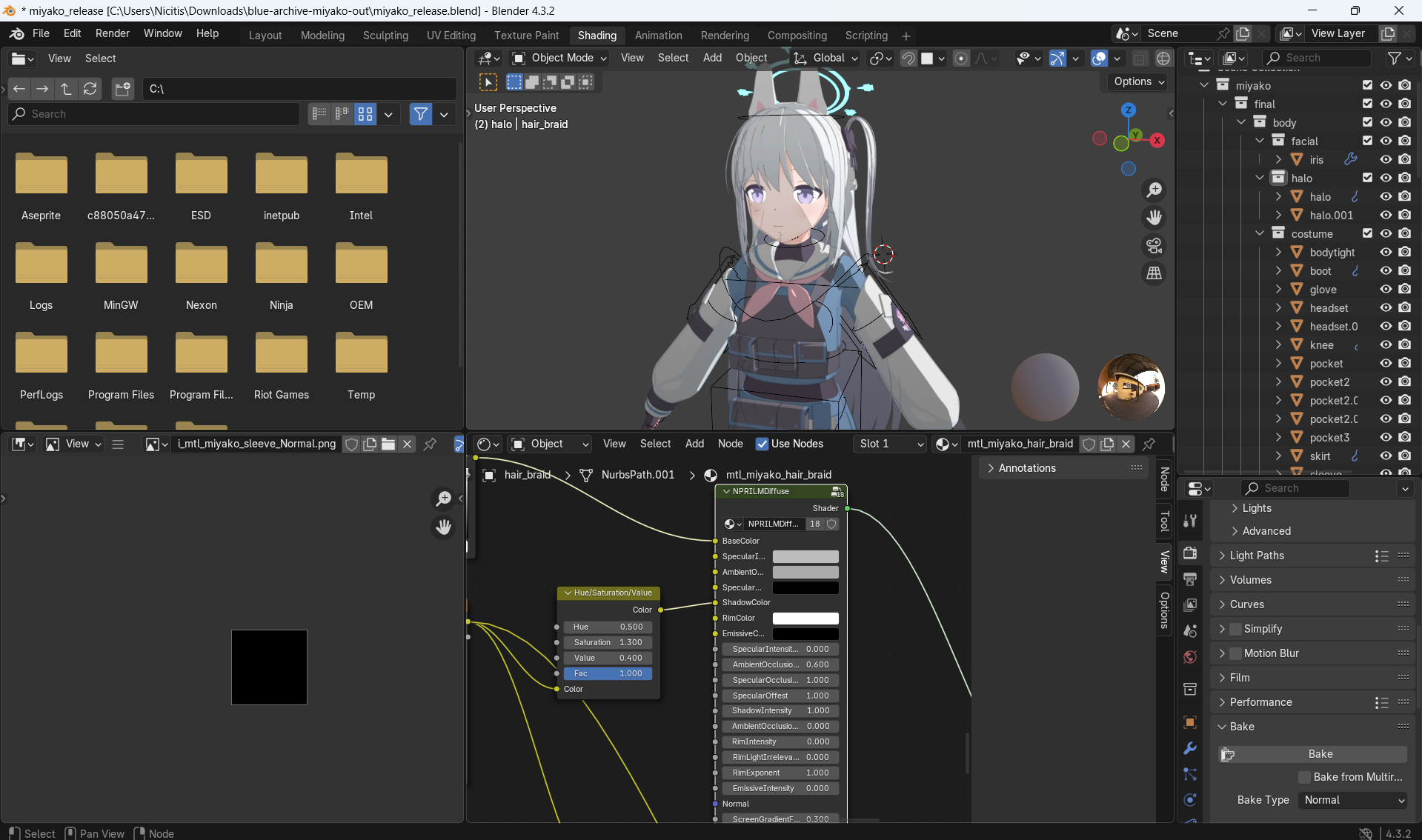 이것이 문제가 되는 이유는, 카툰 렌더링은 비실사 렌더링 방식에 해당한다는 점이다. 그로 인해 PBR 방식의 Principled BSDF는 카툰 렌더링 방식의 ‘미야코’ 모델에 맞지 않았다.