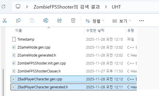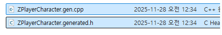(4) {프로젝트명}\Intermediate\Build\Win64\UnrealEditor\Inc\{프로젝트명}\UHT으로 들어가 generated.h 파일과 gen.cpp 이름을 바꿔준다.