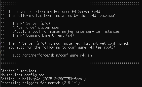 sudo /opt/perforce/sbin/configure-helix-p4d.sh