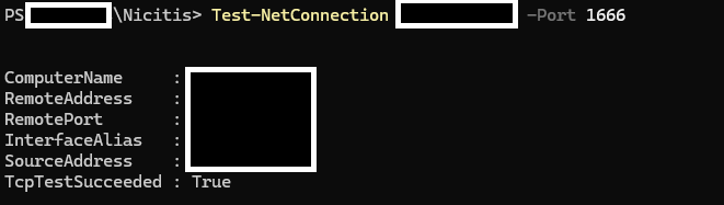 Test-NetConnection PUBLIC_ADDRESS -Port 1666